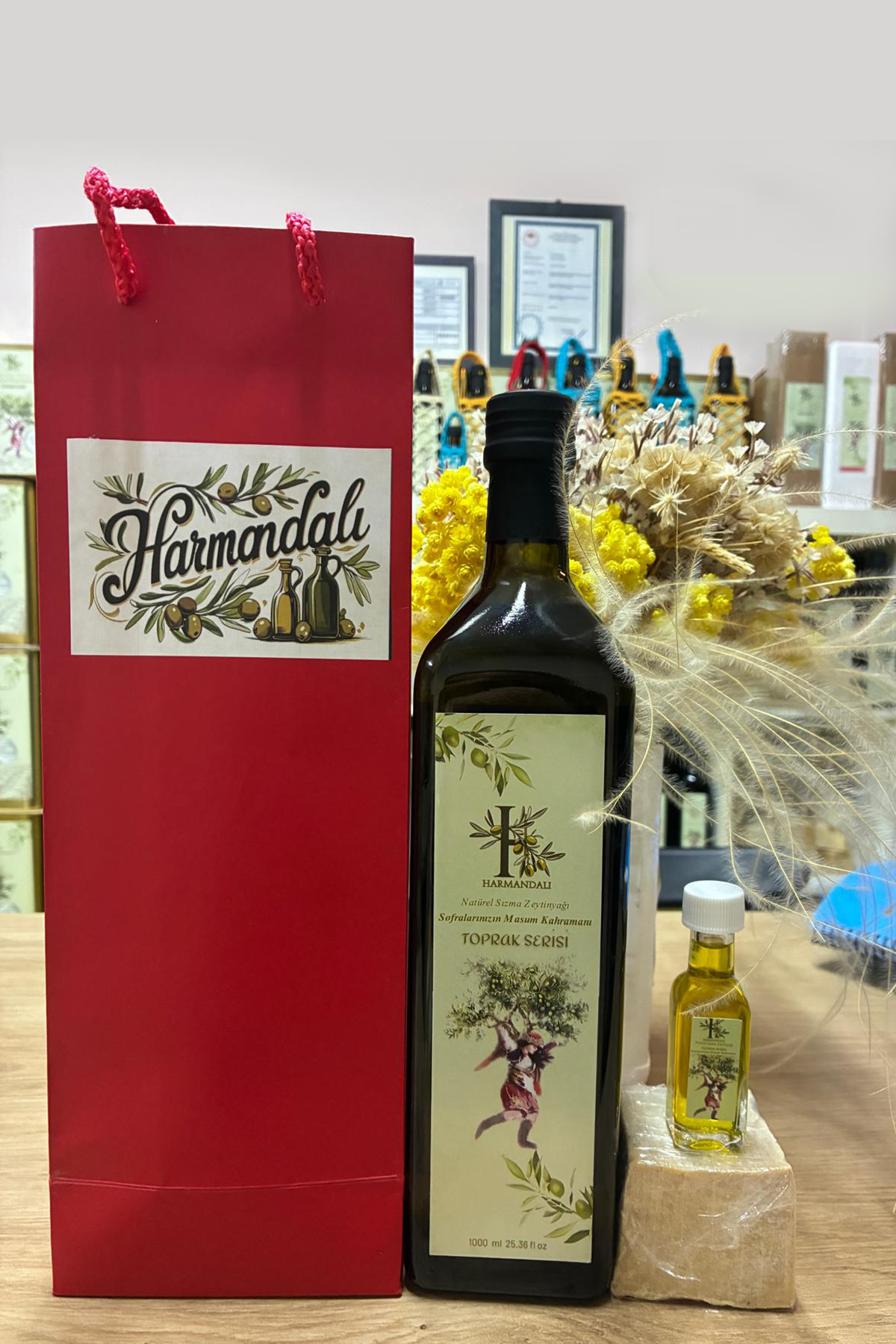 1000 ml. Zeytinyağı + 1 Adet Tadım Şişesi + Kraft Çanta + Zeytinyağlı Sabun